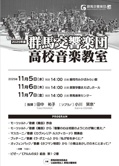 11月6日に芸術鑑賞教室が行われました。今年度は、群馬交響楽団による「高校音楽教室」を全学年が昌賢学園まえばしホールに移動して鑑賞しました。
