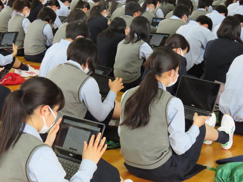 5月15日に前期生徒総会を行いました。一人一台端末を使用して資料を閲覧しながら、協議、質疑応答、承認など行いました。