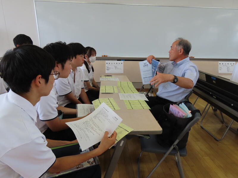 7月1日に3年生対象の大学説明会を実施しました。県内外24の大学、短期大学に来校またはオンラインで参加していただきました。生徒は希望の大学を中心に複数の大学の説明を聞き、パンフレットや受験情報を得ることができました。