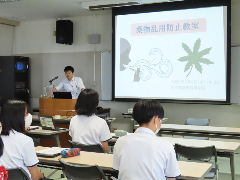 2学年を対象に7月3日に、前橋東警察署 生活安全課より講師の先生をお迎えし、薬物乱用防止教室を行いました。暑さ対策のためオンライン利用となりましたが生徒は真剣に受講していました。