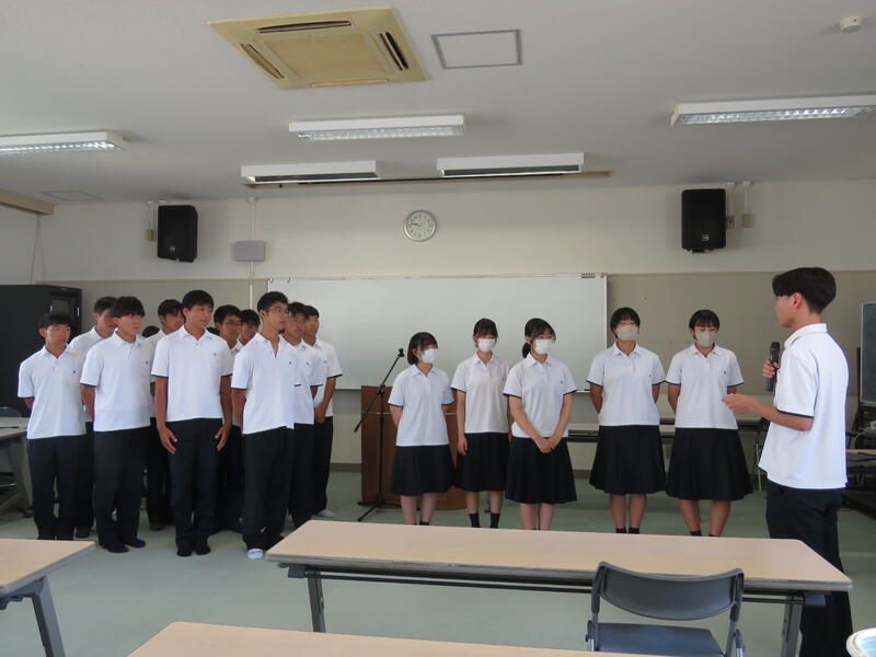 1学期終業式が暑さ対策のためリモート形式で行われました。また、生徒会任命式、表彰と、卓球部、カヌー部、放送部、女子バレーボール部の関東・全国大会への壮行会も行いました。