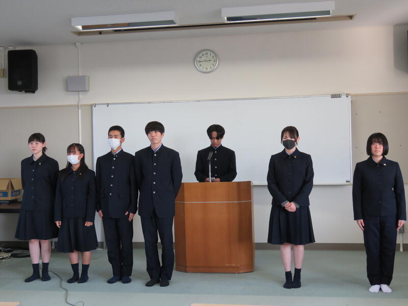 10月18日に後期生徒総会をリモート形式で行いました。常任委員任命式に続き、新旧役員交代式を行いました。