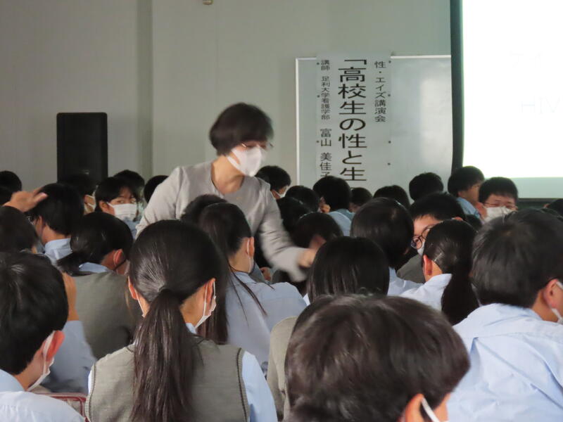 10月25日、一年生を対象に性エイズ講演会を行いました。足利大学看護学部、富山美佳子准教授をご講話いただきました。