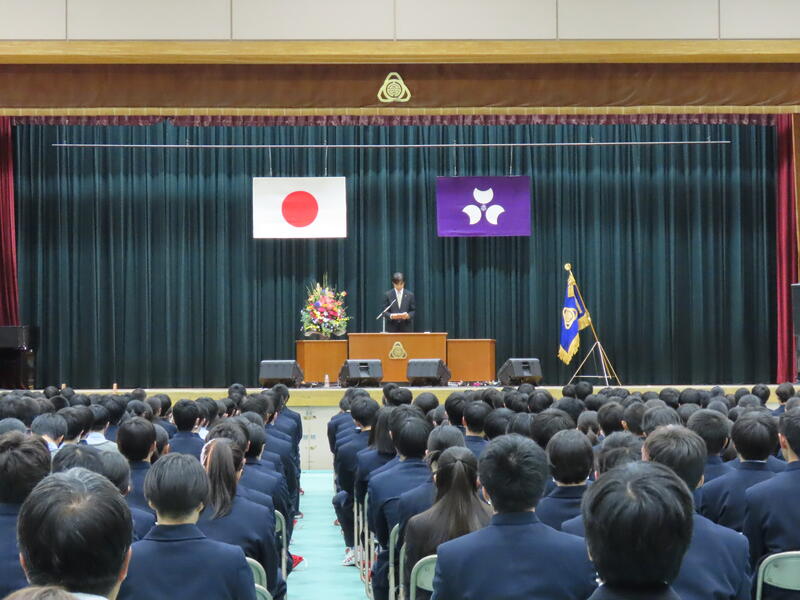8月29日に、2学期始業式をリモート形式で行いました。また、夏季休業中に活躍した部活動の表彰と、女子バレーボール部の国体、吹奏楽部の西関東大会、カヌー部の関東大会への壮行会を行いました。