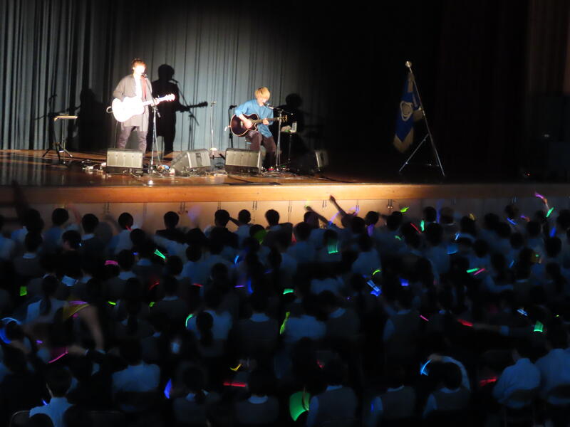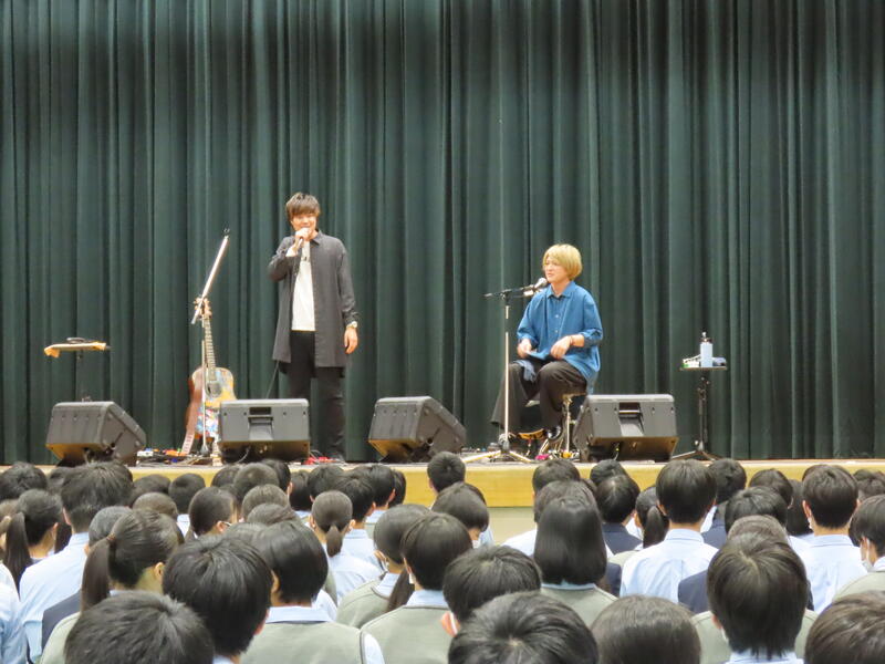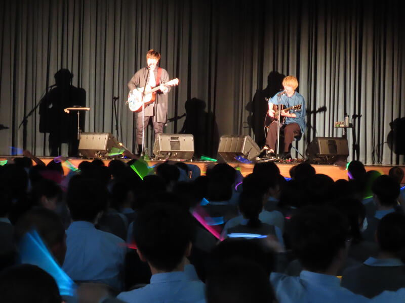 創立記念演奏会では、本校卒業生の高瀬亮佑氏と、高田歩氏によるアコースティックデュオ 高高-takataka- のすてきな演奏を聴かせていただきました。高校生時代のお話もしていただき、生徒は背中を押してもらえました。高高-taka taka-のお二人にはお忙しいところ有り難うございました。