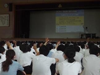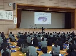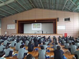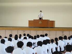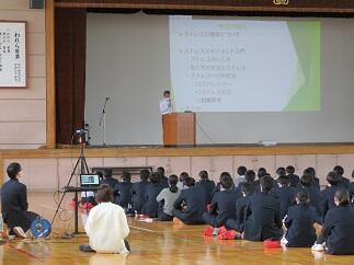 「こころの教育事業」としてスクールカウンセラーの岩田嘉光先生に「ストレスマネジメント ストレスとうまくつきあうために」の演題でご講演いただきました。様々なストレスとその対処法について教えていただきました。3密回避のため、4月28日に1年生、5月19日に3年生は体育館、2年生は各教室で視聴しました。