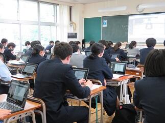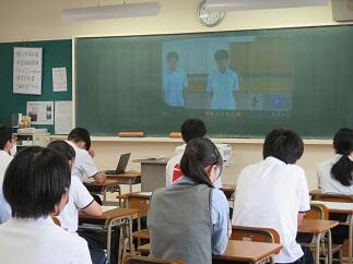 後期生徒総会が行われ、常任委員任命や後期委員会活動計画報告などがありました。今回も3密回避の観点から常任委員や本部役員は視聴覚室、他の生徒は各教室でWEB会議やチャットを利用して行いました。資料も電子版を配布したので、生徒は一人一台端末を活用してその資料を見ながら参加しました。