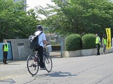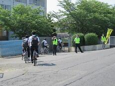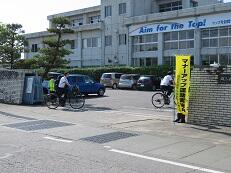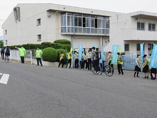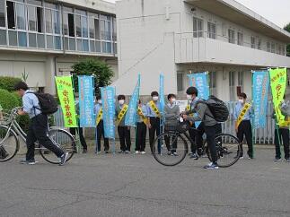 4月15日、本校職員が学校周辺に立ち、交通・挨拶指導をするミニマナーアップ運動を実施しました。雨のため、送迎の生徒も多かったのですが、自転車通学ではヘルメットを着用している生徒が増えてきました。
