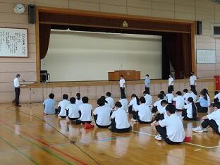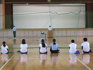 7月21日に1学期終業式が行われました。密にならないよう3年生は体育館で、1,2年生は教室で中継をつないで実施されました。