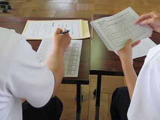 生徒会役員選挙が行われました。密を防ぐため、立候補者と推薦者、選挙管理委員は体育館で立会演説会をし、他の生徒は各教室で中継を見る形となりました。立会演説会の後、すぐに投票、開票を行い、新しい生徒会役員が決まりました。