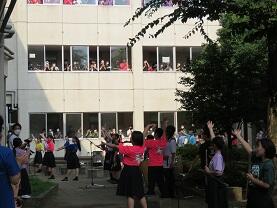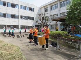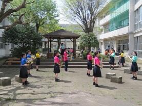 4月13日、青空のもと吹奏楽部による中庭コンサートが昼休みに行われました。