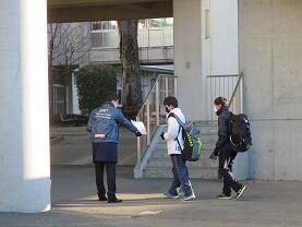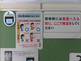 登校時の検温も、新しい非接触型体温計が生徒玄関に常設され、生徒本人が測定してから教室に入るようになりました。