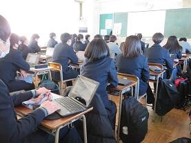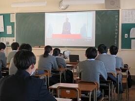12月24日に2学期終業式が視聴覚室から各教室へ中継する方法で行われました。