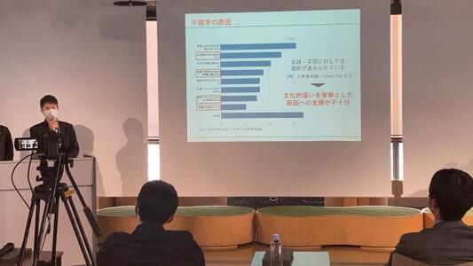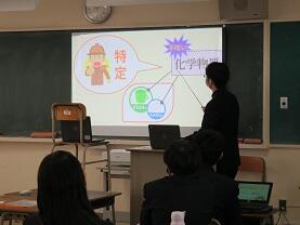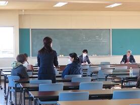 「進路プランニング」とは、総合学科の生徒が学ぶ科目「産業社会と人間」の本校での呼び方で、各自の進路について研究し、実現に向けて計画を立てる授業です。今年度の1年生は社会福祉・国際関係学ゼミ、工学ゼミ、文学心理語学ゼミ、教育・生活情報ゼミ、医療ゼミ、理学・農業ゼミ、法学政治経済学ゼミの7つのゼミに分かれ活動を行ってきました。12/17に各ゼミの代表者1名が発表を行い、学校代表を選出しました。
