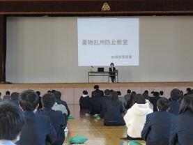 2年生を対象に薬物乱用防止教室を行いました。前橋東警察署 生活安全課より講師の先生をお招きして講話をいただきました。
