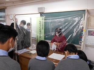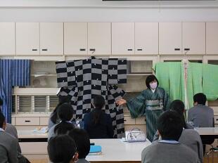 1年次「家庭基礎」において、厚生労働省認定のものづくりマイスターで現代の名工にも選ばれた和裁技能士 川岸美枝子先生を招いて授業が行われました。
