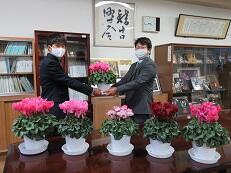PTAの皆様よりシクラメンをいただきました。各教室、保健室や図書室などの特別教室に飾らせていただきます。