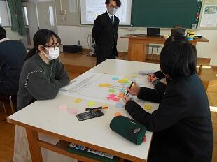 3年次 家庭科 選択科目「子どもの発達と保育」の授業において、群馬県高大連携ライフデザイン支援事業の一環として、共愛学園前橋国際大学 奥田雄一郎 教授による「ライフデザイン・ワークショップ」の授業が12月9日、16日の2回行われました。大学3年次の学生2名(うち1名は前橋東高校卒業生)がファシリテーターとなり、2グループに分かれてこれからのライフデザインについて考え、プレゼンテーションを行いました。