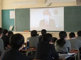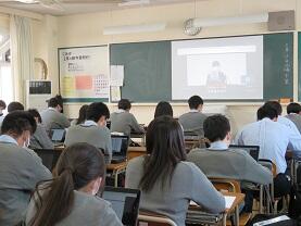 2月4日の1年次「進路プランニングⅠ」の時間に、共愛学園前橋国際大学 奥田雄一郎 教授による「高校生のためのライフデザイン・ワークショップ」のリモート授業が行われました。これは群馬県生活こども部生活こども課企画の高大連携ライフデザイン支援事業の一環として実施されたものです。