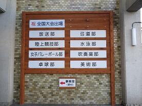 職員玄関入口前の壁に大会出場看板が新しく設置されました。(県産材活用推進事業)