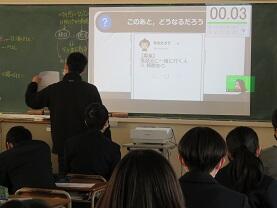 インターネット上で発生するコミュニケーショントラブルなどを想定した事例を用いながら、円滑なコミュニケーションに必要な要素やインターネットの特徴、トラブルの際の影響や注意点について学びました。