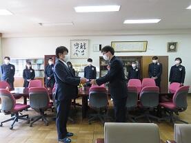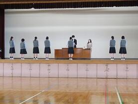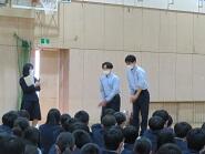 また、終業式の前に、生徒会からの「ヘルメット着用啓発」や、2学期に活躍した部活動などへの表彰伝達が行われました。
