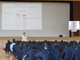 10月26日、一年生を対象に性エイズ講演会を行いました。足利大学看護学部、富山美佳子准教授をご講話いただきました。