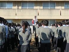 11月2日に地震を想定したシェイクアウト訓練と火災を想定した避難訓練を行いました。現在校生はコロナ禍により、時間差での避難訓練が続いていましたが、今回は全校一斉での避難訓練となりました。避難後、校長先生の講評及び大塚消防施設様による講話が行われました。