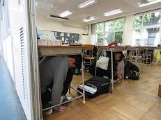 学校での地震・火災発生時に際し、避難行動を迅速・的確かつ安全に行うことができ、避難後の人員確認が正確かつ速やかに行えるように避難訓練を行いました。まず、緊急地震速報行動訓練を実施し、続いて火災発生を想定した避難訓練を実施しました。