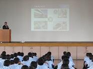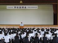 学校生活全般について、本校の進路指導についてなどをお話させていただきました。また、生徒会役員生徒も、動画やスライドを使って学校生活についての紹介をしました。その後、吹奏楽部による歓迎演奏や部活動を見学していただきました。