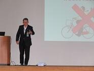 今年度二回目の交通安全教室を実施しました。前回は、自転車検定や自転車通学安全チェックシートなどを使い、交通ルールや自身の通学状況の確認をしました。今回は、日本自動車連盟群馬支部より講師の先生をお迎えして、「ドライバー(自動車)からの見え方を踏まえた自転車・歩行者の交通安全」について講演していただきました。
