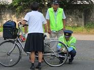 夏季休業を控えて19日には交通安全協会の方々が登校時間に、自転車に反射板を付けるなど、交通安全指導をしてくださいました。