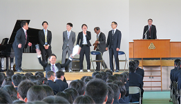 新任式では今年度から加わる6名の教職員の紹介がありました。始業式では先生方の歌を含めた校長式辞、生徒指導主事講話、進路指導主講話、新担任の発表があり、気持ちも新たに平成30年度が始まりました。